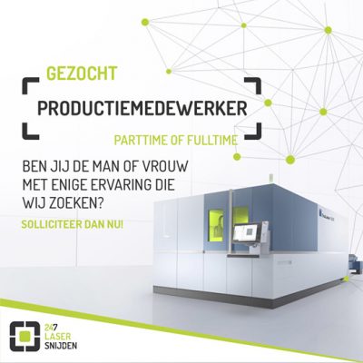 247 Lasersnijden is op zoek naar een fulltime of parttime productiemedewerker